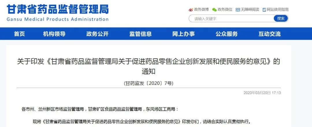 近期,甘肅省藥品監督管理局出臺《關于促進藥品零售企業創新發展和便民服務的意見》(以下簡稱《意見》),從推動藥品零售企業轉型升級等領域入手,細化提出了18條具體舉措來促進藥品零售企業發展。