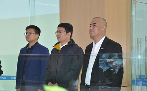 老百姓健康藥房集團董事長康明陪同樟樹市人民政府市長尹志來參觀全國視頻點檢中心