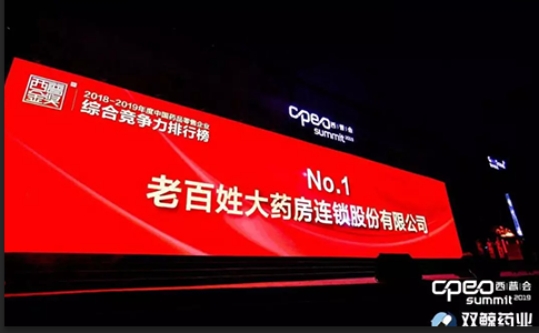 眾所周知,西普會是醫藥行業極具影響力的年度盛事,被稱為中國藥品零售行業的“奧斯卡”。然鵝!2019年8月14日,在西普金獎頒獎盛典上,老百姓大藥房連鎖股份有限公司再次獲得(劃重點!)中國藥品零售企業綜合競爭力排行榜第一名!